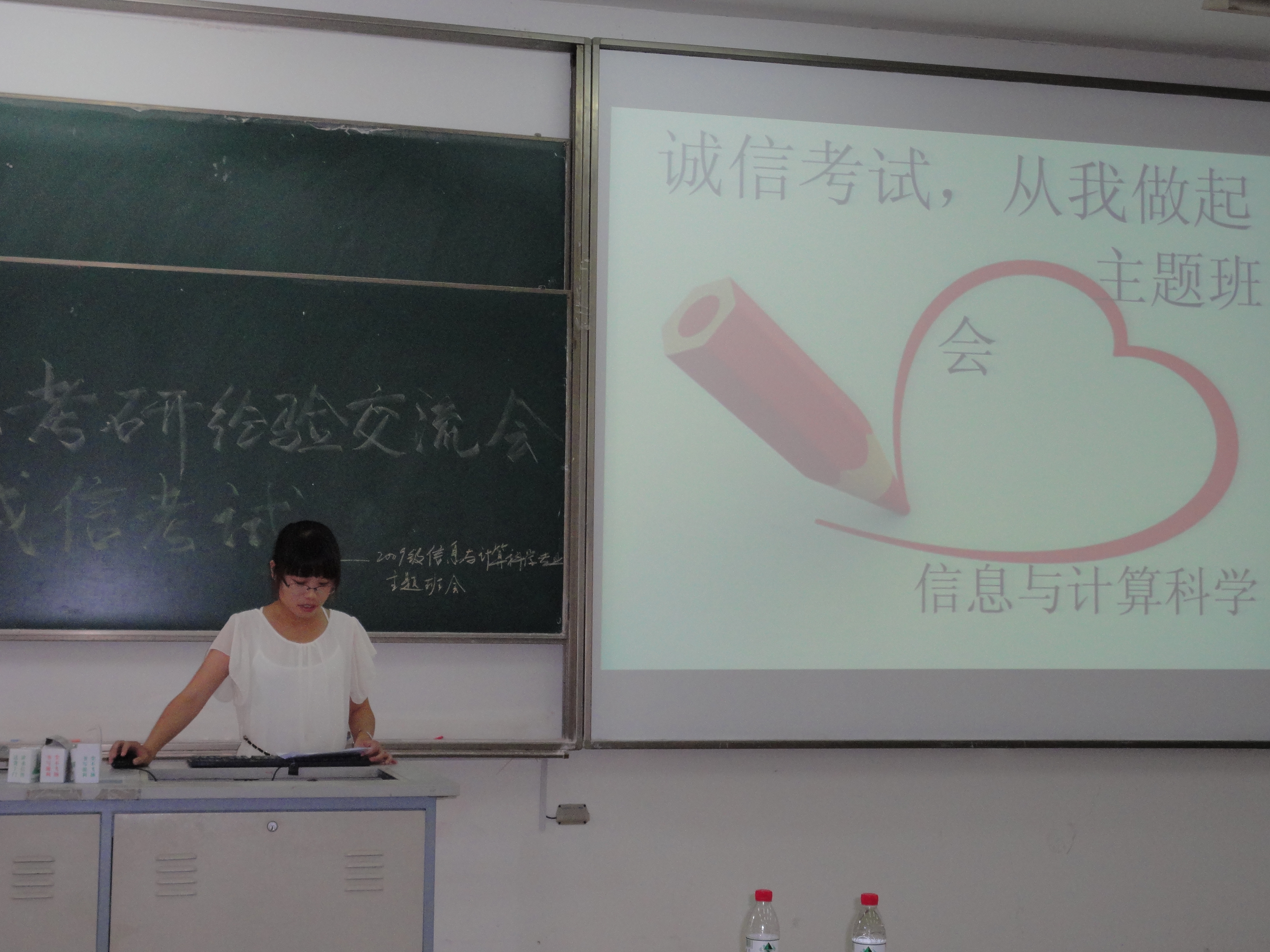 会议中各专业学习委员分别带领同学们学习了修订的《国家教育考试违规处理办法》及全国大学英语四、六级考试和期末考试的考试规则、《考试纪律和考试违纪处理规定》,通过观看视频、讨论等环节,在轻松和谐的气氛中增强了大家的诚信意识,使同学们重视学习,重视考试,坚定诚信信念,加强自我教育和自我管理意识,从而促进班风、学风、考风向更健康的方向发展。有的专业还根据四六级通过率、个性化学风获得情况做了专项分析,结成了帮扶对子,鼓励同学们相互帮助,共同进步。