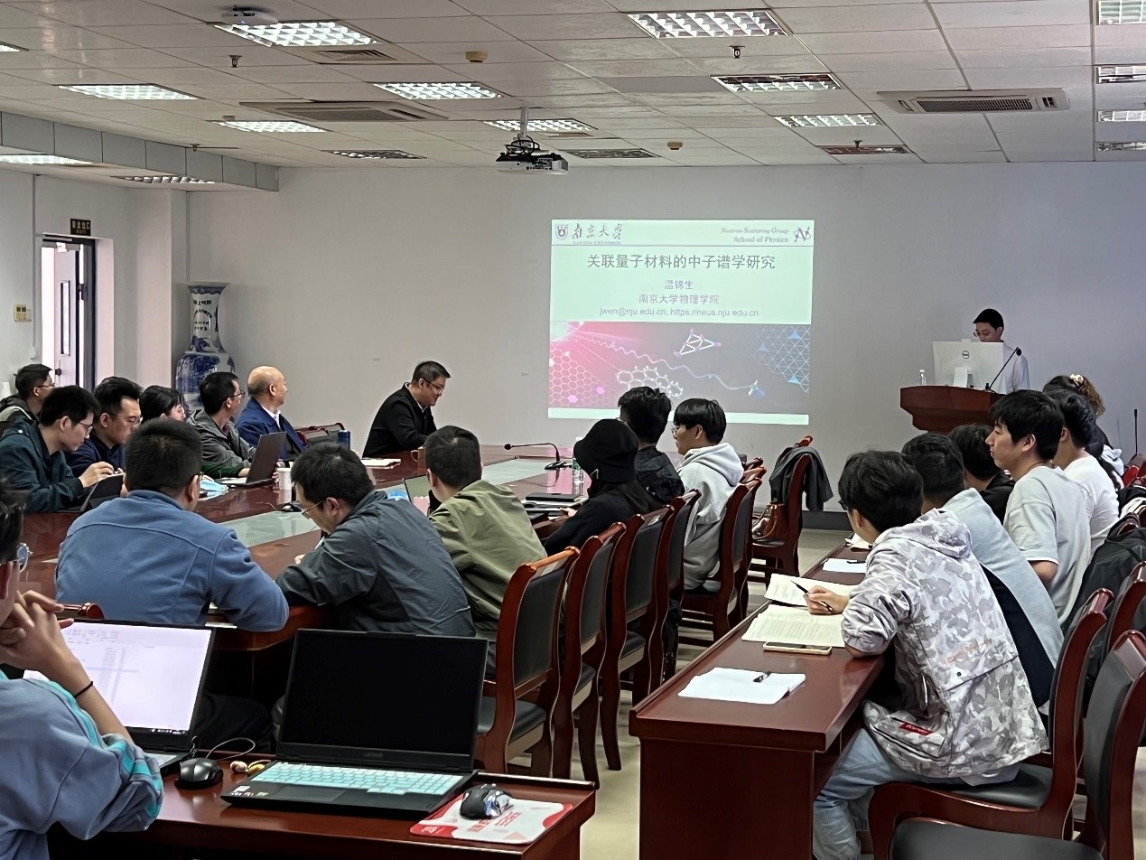 温锦生教授作了题为“关联量子材料的中子谱学研究”的报告。近代物理学的主流方向之一是对量子材料及量子物理的研究,其中具有较强电子关联的超导体、量子磁体等量子材料,由于其丰富新颖的物理及突出广泛的应用前景,受到了广泛的关注。报告中,温锦生教授介绍了从局域量子阻挫到巡游电子体系来寻找新颖量子物理,着重介绍了其团队近期在Kitaev量子自旋液体候选材料α-RuCl3中取得的进展,他们利用中子散射技术确认了Kitaev相互作用在这个材料中是真实存在的,并且发现了磁场诱导的量子自旋液体相,以及在范德华铁磁材料Fe3-xGeTe2中发现磁激发的二元特性及近藤相互作用。